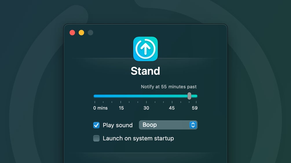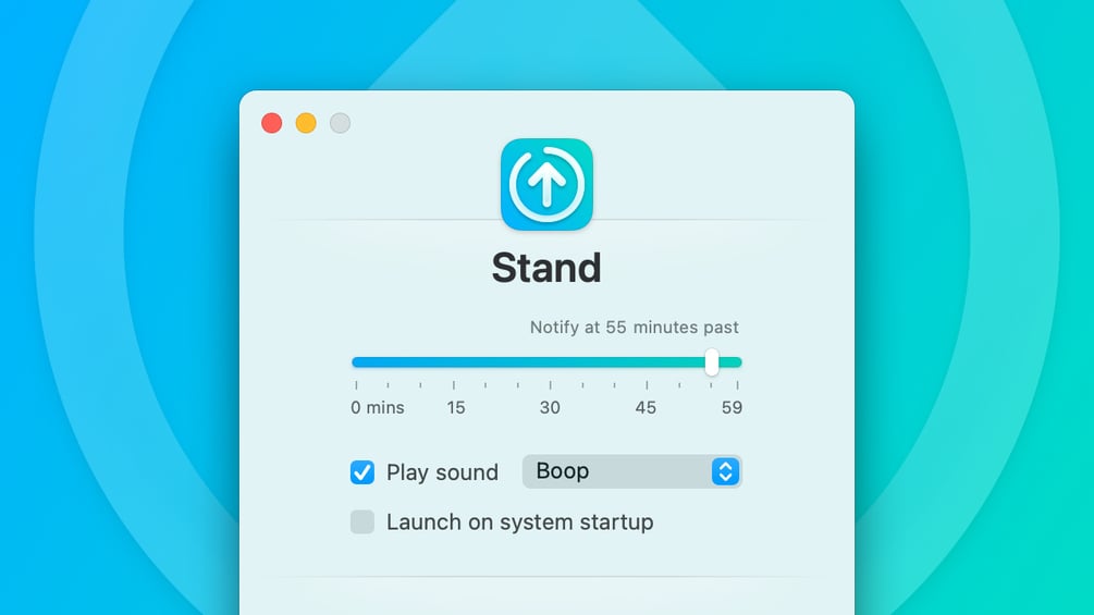 Choose a time, an optional sound, and Stand will push a notification to your Mac to remind you it's time to stand up.